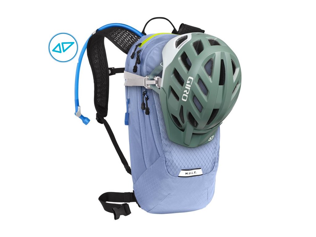 Legendární bikový batoh M.U.L.E. je svým obsahem 12 l určený pro celodenní výšlapy. Má ve výbavě integrovaný organizér (poutko na klíče a šikovné přihrádky na doklady), Magnetic Tube Trap a Helmet Carry, kapsu na telefon či brýle, hrudní a bederní pás (odnímatelný), reflexní prvky a poutko na blikačku. Inovovaný zádový systém Air Support zajišťuje pohodlí a kvalitní odvětrání zad. Dokonale prodyšné jsou i popruhy. Dámská verze je navržena tak, aby respektovala ženské torso, a popruhy jsou vytvarované do „S“.