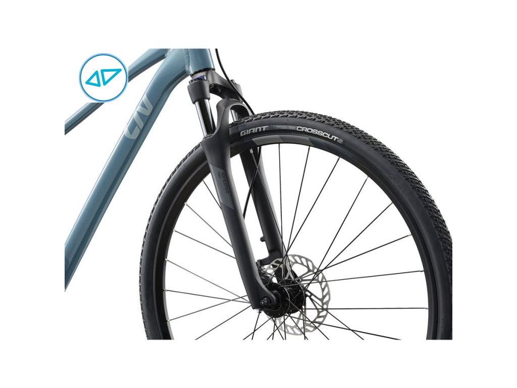 Jízdu po nerovnostech výrazně zpříjemní vzduchová odpružená vidlice se zdvihem 50 mm. Vysoký brzdný účinek a jemné dávkování brzdné síly zajistí hydraulické kotoučové brzdy. Jistotu na hrubších cestách dodají širší pláště Giant CrossCut s ochranou proti defektu a se vzorkem pro lepší trakci a současně nízký valivý odpor. Pro delší výlety s brašnami je tu možnost namontovat na kolo zadní nosič.