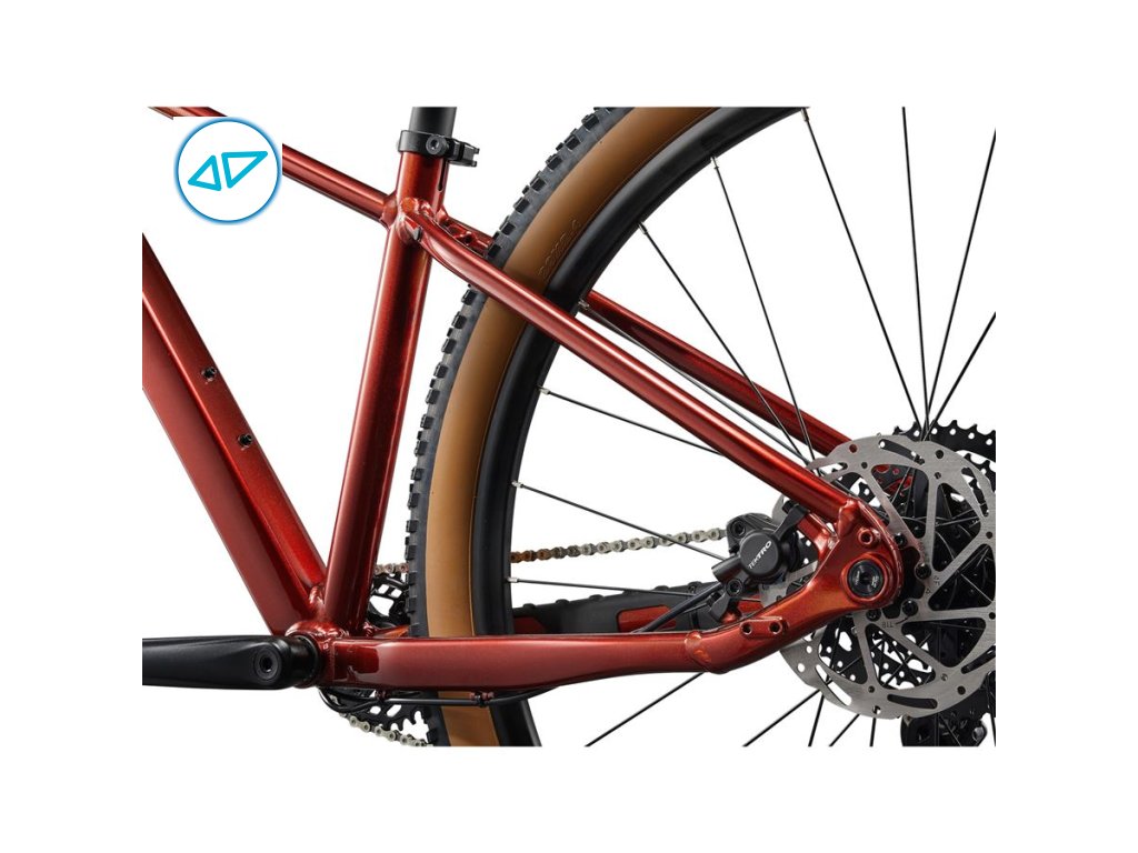Úplně nový hliníkový rám přináší nejen modernější design a geometrii, ale i nižší hmotnost. Novinkou je také zadní pevná osa, která oproti klasickému rychloupínáku navyšuje tuhost spojení zadního kola a rámu, a hlavová trubka na tapered (kuželovitý) sloupek vidlice, díky níž je kolo stabilnější a lépe se ovládá, zejména v kamenitých sjezdech a „utažených“ zatáčkách. Samozřejmostí je vnitřní vedení bowdenů včetně teleskopické sedlovky a nechybí ani integrovaný chránič řetězové vzpěry.